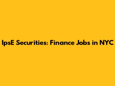 IpsE Securities: Finance Jobs In NYC