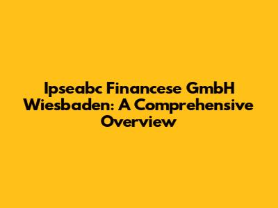 Hey everyone! Today, we're diving deep into Ipseabc Financese GmbH Wiesbaden, a name that might pop up if you're exploring financial services, especially in the Wiesbaden area. We'll break down exactly what this company is all about, what services they offer, and what you should know if you're considering them for your financial needs. This guide is designed to be super clear and helpful, so whether you're a seasoned investor or just starting out, you'll find something useful here. Let’s get started and demystify Ipseabc Financese GmbH Wiesbaden! We'll cover everything from their core business to the specifics of their operations. We'll also try to give you some insights to help you decide if their services are right for you. Get ready for a thorough look at Ipseabc Financese GmbH Wiesbaden!