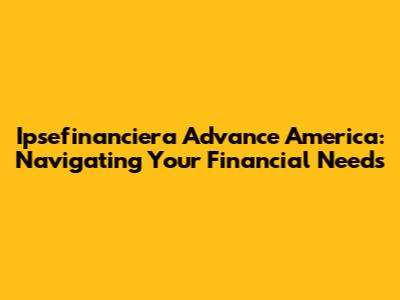 Ipsefinanciera Advance America: Your Guide To Financial Solutions