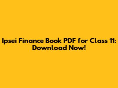 Ipsei Finance Book PDF For Class 11: Download Now!