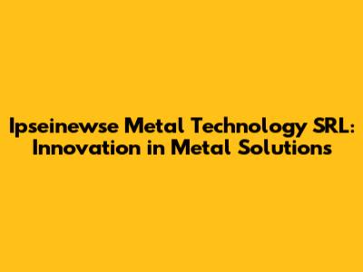Ipseinewse Metal Technology SRL: Innovation In Metal Solutions