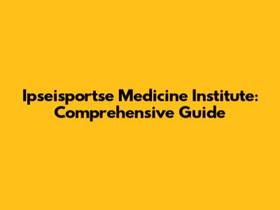 Ipseisportse Medicine Institute: Comprehensive Guide