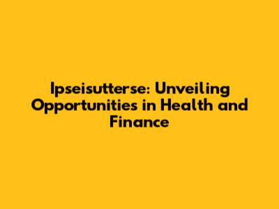 Ipseisutterse: Health And Finance Career Opportunities