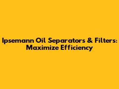 Ipsemann Oil Separators & Filters: Maximize Efficiency