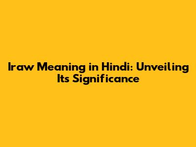 Iraw Meaning In Hindi: Exploring Its Significance