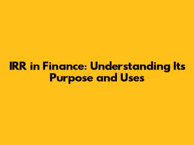 IRR In Finance: Understanding Its Purpose And Uses