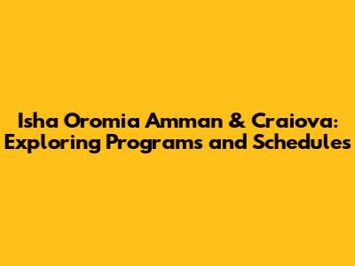 Isha Oromia Amman & Craiova: Exploring Programs and Schedules