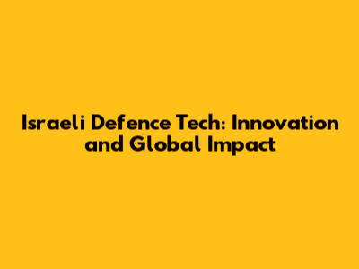 Israeli Defence Tech: Innovation And Global Impact