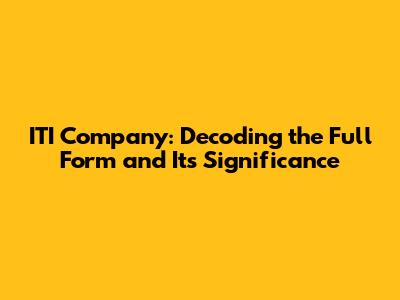 ITI Company: Unveiling The Full Form And Its Significance