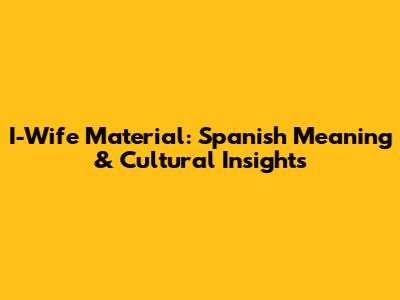 Hey guys! Have you ever heard the term "I-wife material" and wondered what it means, especially in the context of Spanish-speaking cultures? Well, you're in the right place! Let's dive deep into what this term signifies, how it's perceived, and some cultural insights that will give you a better understanding. So, buckle up and get ready to explore the nuances of "I-wife material" in the vibrant world of Spanish-speaking communities!