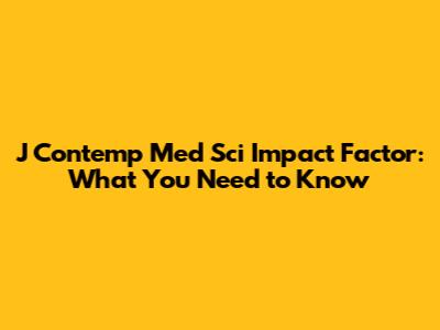 J Contemp Med Sci Impact Factor: What You Need To Know