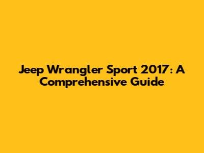 Jeep Wrangler Sport 2017: A Comprehensive Guide