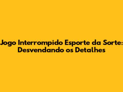 Jogo Interrompido Esporte Da Sorte: O Que Você Precisa Saber