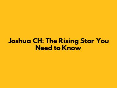 Joshua CH: The Rising Star You Need To Know