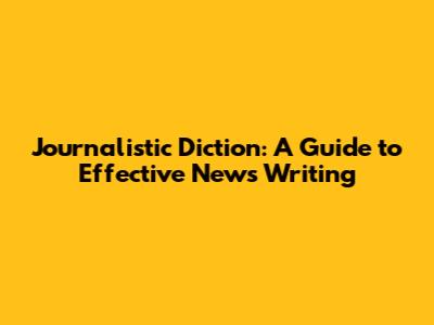 Journalistic Diction: A Guide To Effective News Writing