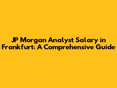 JP Morgan Analyst Salary In Frankfurt: A Comprehensive Guide
