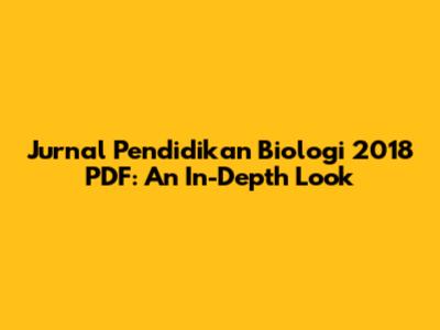 Jurnal Pendidikan Biologi 2018 PDF: An In-Depth Look