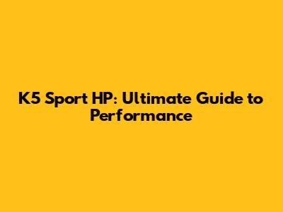 K5 Sport HP: Ultimate Guide To Performance