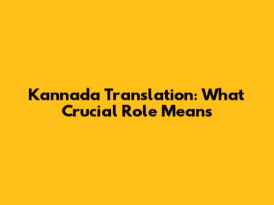 Kannada Translation: What 'Crucial Role' Means