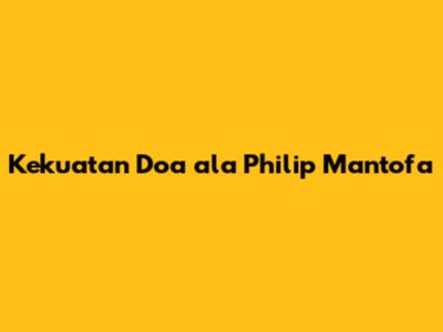 Kekuatan Doa Ala Philip Mantofa