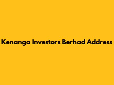 Kenanga Investors Berhad Address: Find It Here!