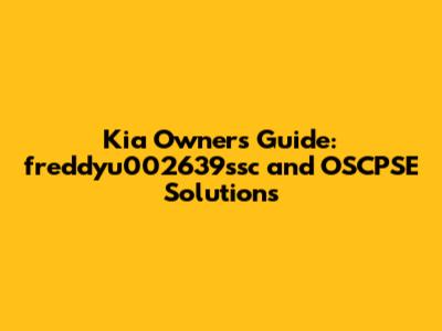 Kia Owner's Guide: Freddyu002639ssc And OSCPSE Solutions