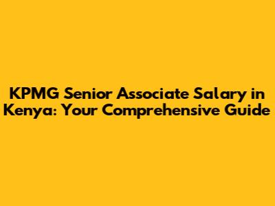 Hey there, future professionals! If you're eyeing a career at KPMG Kenya and aiming for the Senior Associate position, you're probably wondering about the salary expectations . Well, you've come to the right place! This comprehensive guide will break down everything you need to know about the KPMG Senior Associate salary in Kenya, including factors influencing it, benefits, and how to increase your earning potential. So, let's dive in and get you informed!