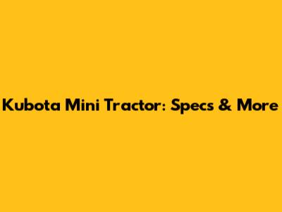 Kubota Mini Tractor: Specs & More