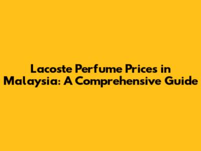 Lacoste Perfume Prices In Malaysia: A Comprehensive Guide