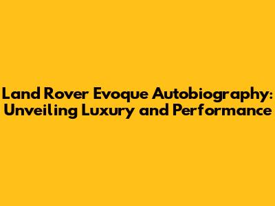 Hey there, car enthusiasts! Ever dreamed of cruising in a vehicle that screams luxury, boasts cutting-edge technology, and turns heads wherever it goes? Well, the Land Rover Evoque Autobiography might just be your dream come true. This isn't just another SUV; it's a statement. It's about experiencing the finer things in life, wrapped in a sleek, sophisticated package. Let's dive deep into what makes the Evoque Autobiography so special. We'll cover everything from its stunning design to its powerful performance and lavish interior. Buckle up, guys, it's going to be a fun ride!