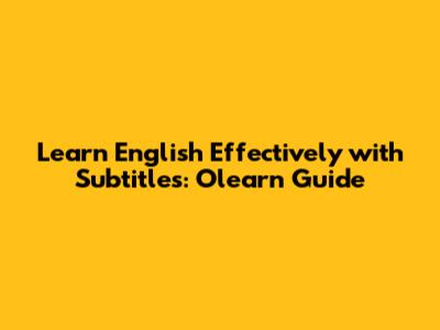 Learn English Effectively With Subtitles: Olearn Guide