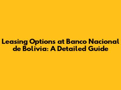 Leasing Options At Banco Nacional De Bolivia: A Detailed Guide