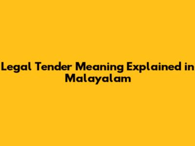Legal Tender Meaning Explained In Malayalam