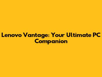 Lenovo Vantage: Your Ultimate PC Companion