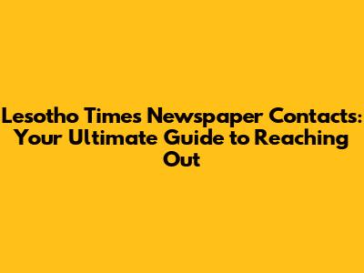 Lesotho Times Newspaper Contacts: Your Guide To Reaching Out