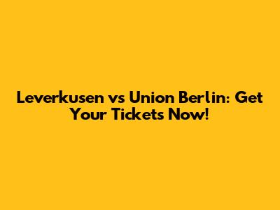 Leverkusen Vs Union Berlin: Get Your Tickets Now!