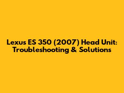 Lexus ES 350 (2007) Head Unit: Troubleshooting & Solutions