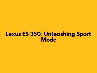 Lexus ES 350: Unleashing Sport Mode