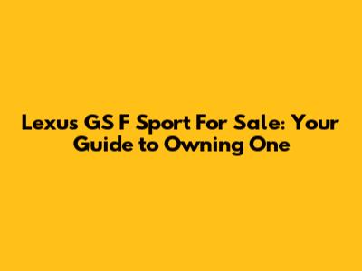 Lexus GS F Sport For Sale: Your Guide To Owning One