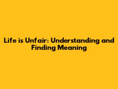 Life Is Unfair: Understanding And Finding Meaning