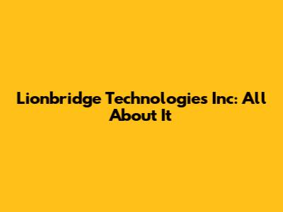 Lionbridge Technologies Inc: All About It