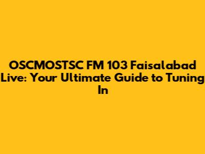 So there you have it, guys! Everything you need to know to tune into OSCMOSTSC FM 103 Faisalabad live and stay connected with all the awesome stuff happening in the city. Whether you're vibing to the latest music, catching up on the news, or diving into engaging talk shows, OSCMOSTSC FM 103 has got you covered. Don't forget to hit up their website and social media pages to stay even more connected. Happy listening!