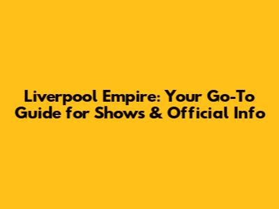 Liverpool Empire: Official Website & Show Guide