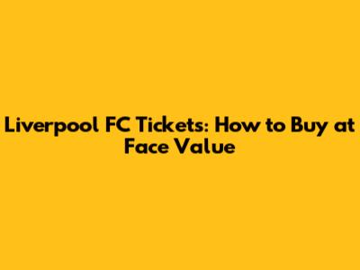 Liverpool FC Tickets: How To Buy At Face Value