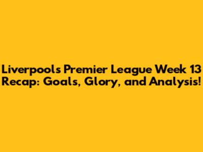Liverpool's Premier League Week 13 Recap: Goals, Glory, And Analysis!