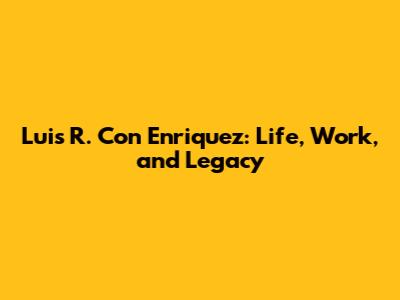 Luis R. Con Enriquez: Life, Work, And Legacy