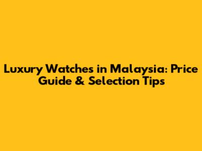Luxury Watches In Malaysia: Price Guide & Selection Tips
