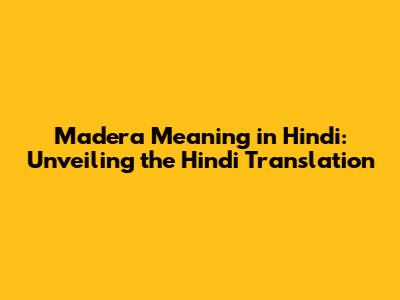 Madera Meaning In Hindi: Unveiling The Hindi Translation