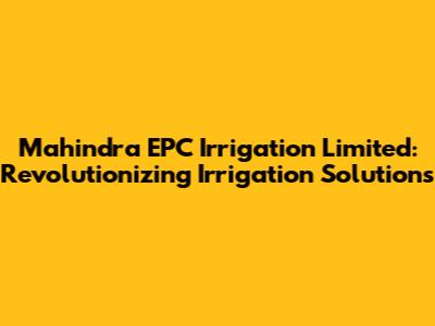 Mahindra EPC Irrigation Limited is a leading provider of irrigation solutions that are transforming the agricultural landscape. With a focus on innovation, technology, and sustainability, the company is committed to helping farmers improve their yields, conserve water, and protect the environment. Their comprehensive range of products and services, combined with their dedication to customer satisfaction, make them a trusted partner for farmers across India. As agriculture continues to evolve, Mahindra EPC Irrigation will undoubtedly play a key role in shaping a more sustainable and prosperous future for the sector.