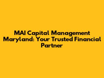 MAI Capital Management: Your Trusted Maryland Financial Partner